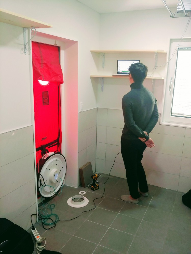 감압 가압 평균 0.23회 @50pa로 아주 좋은 기밀성능이 나왔습니다.