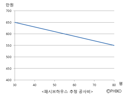 아직 확신을 가질 정도로 일반화하기엔 그 숫자가 작지만, 현재까지 10여채의 공사를 지켜본 결과 우리나라에서 패시브하우스의 공사비는 다음과 같이 정리될 수 있을 것으로 보인다. 항상 그렇듯이 이 가격에는 에너지를 향상시키는 비용과 제대로된 집을 만드는 비용이 모두 포함되어져 있다.