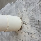 화장실 환풍기 배관이 지중부를 관통해서 옹벽으로 설치됩니다 현상태에서 되메우기를 하려하는데요 장기적으로 배관 주변을 통한 누수가 발생할 수 있을 것 같습니다 누수를 막을 수 있는 방안 좀 조언 부탁드립니다 바탕면은 철근콘크리트에 메쉬몰탈을 시공한 상태이구요 하얀색은 아덱스 접착제를 바른…