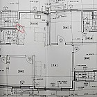도면: 앞베란다는 남향이고, 파랑색은 확장된 거실에 설치된 가벽이며, 가벽에는 문이 하나 있고 문을 열면 안방 앞에 베란다에 우수관이 있습니다. 창호설치 예정은 빨강색은 외부이중창, 초록색은 외부단창 설치 예정입니다. 30년된 30평 구축 아파트 입주를 앞두고 가성비 인테리어를 생각하고…