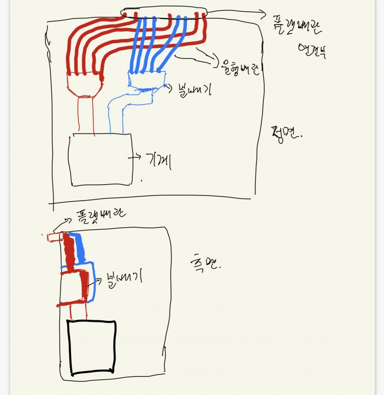결국 교차가 일어나는 부위가 없어야 하고 분배기 설치 위치에 단내림이 20cm 정도 필요해서
