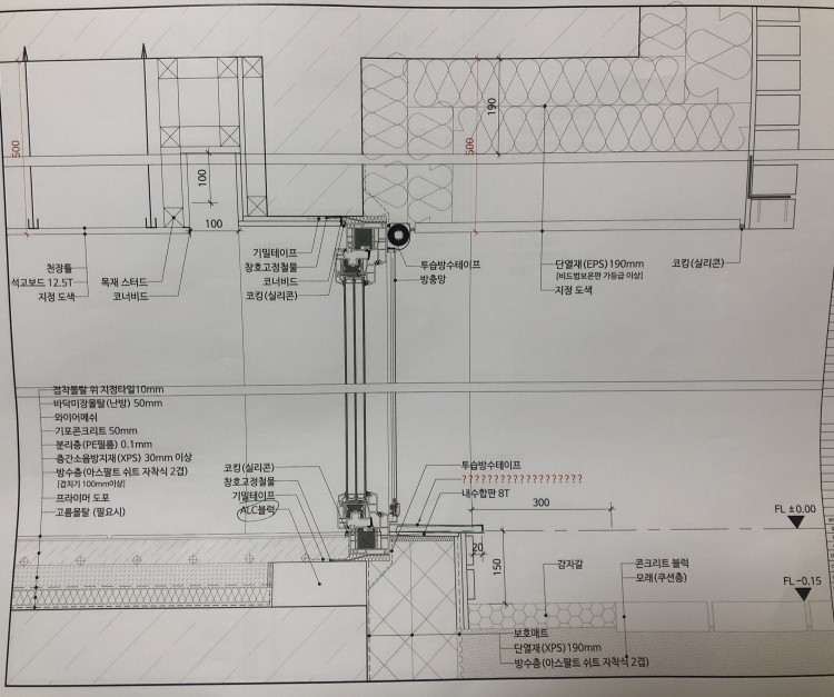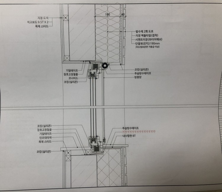 분명 제가 협회에서 공부한 외벽과 창호 끝단 위치를 맞추는 디테일이 아닌 다른방법을 설계사에서 제시하였습니다.