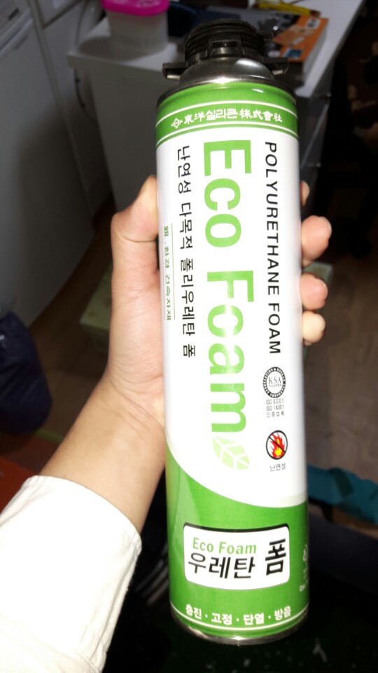 공간에 우레탄폼을 스프레이건을 통해 쏴서 막았구요. 쏘고 놔서 20분쯤 지난 후에 마른거 같아면서