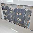 안녕하세요 신축 아파트 단열재 재료 및 도배 관련하여 문의드립니다. 도면에 표시된 파란색 부분에 단열재가 들어간 곳인데요. 문제는 도배지가 살짝 올라와 있어서 절개해보니 아래쪽에 …
