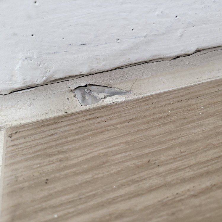 집 대피공간 외벽과 바닥 이름부분 모서리에 백시멘트가 탈락되었는데 안에 비닐이 있네요...