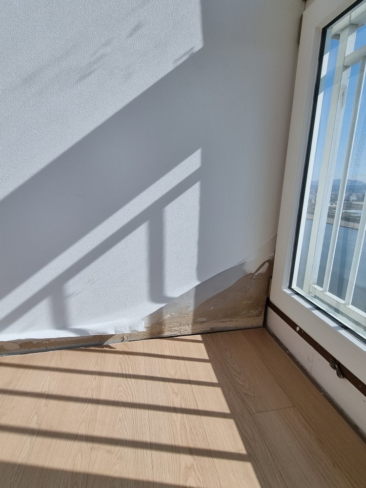 곰팡이 번진부분을 도배지 제거하고 걸레받이도 제거했고