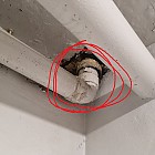 보일러실 천장 하부 모서리 페인트 들뜸 및 시멘트 탈락, 벽 누수
