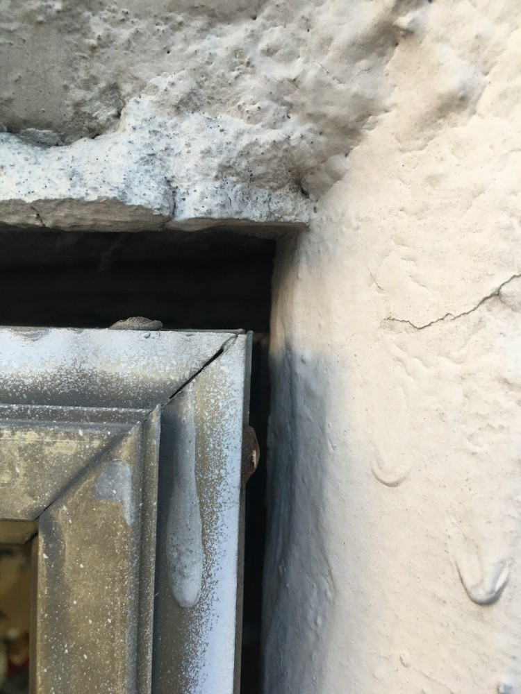 첫번째 사진에서 창틀과 구조체 사이의 틈이 없다가.. 앞 대지 공사 중에 벌어진 것이라면...