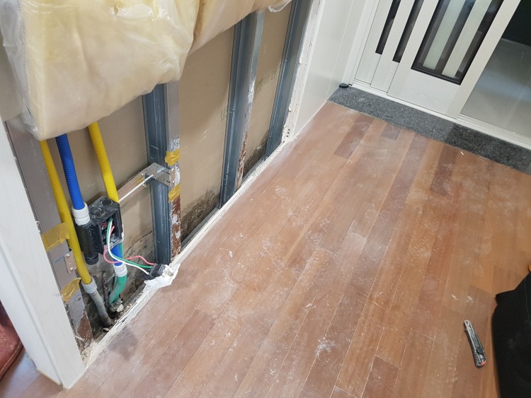 첫번째 사진을 보면.. 건식벽체의 석고보드를 뜯으셨잖아요.