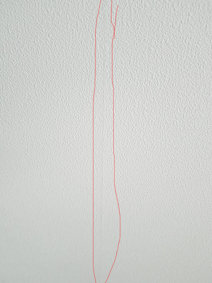 두번째 사진은 벽지와 벽지가 맞대어진 선인데요. 이 부분은 그 위치가 어딘지는 모르겠으나, 맞댐면이 생기는 것은 어쩔 수 없습니다.