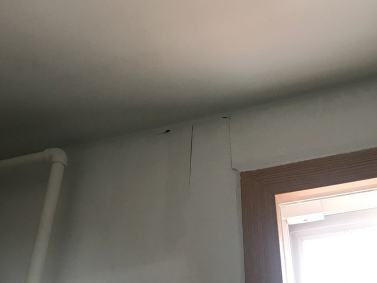 아파트 세탁실, 실외기실 pp보드 시공, 도장 마감 후 코너 균열 및 벽지 욺