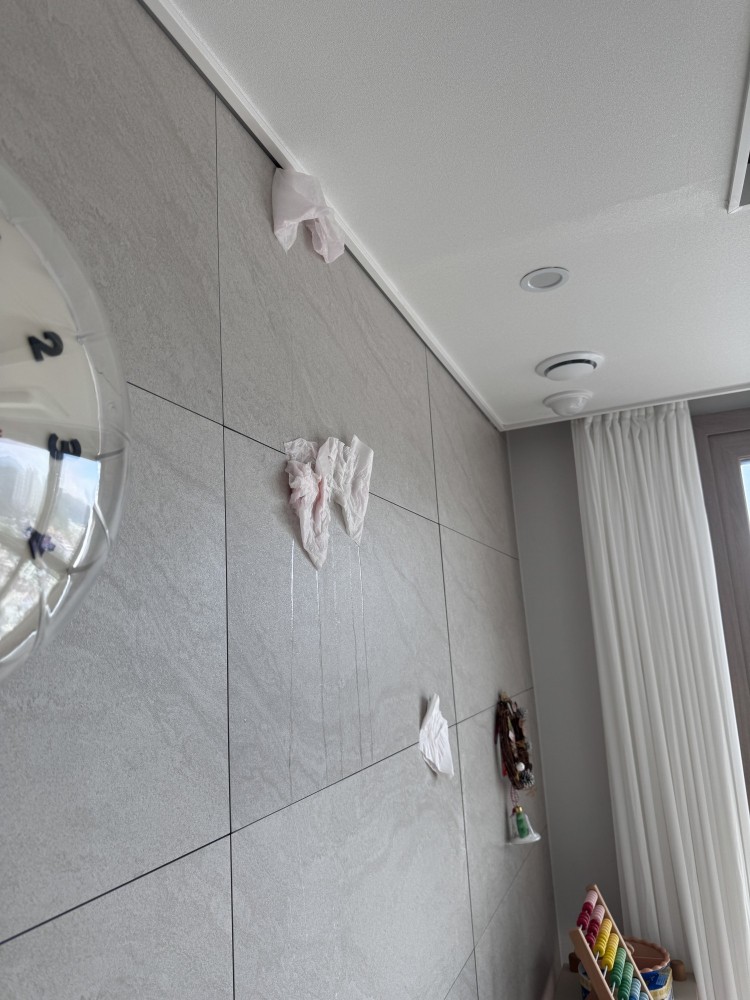 며칠전 갑자기 거실 아트윌쪽 벽면에 물이 흐르는걸 확인했습니다. 닦아도 전혀 마르지않기에 관리실에 문의하니 시스템 에어컨as기사를 불러서 확인하라고 하셔서 기다리는 중 입니다.