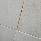 화장실 벽 타일 아래쪽에서 하얀 액채가 나옵니다