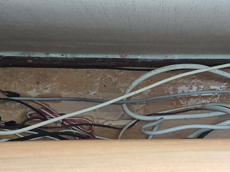 다른 쪽은 이 누수가 걸레받이를 통해 옆으로 퍼진 것이 번져 올라갔을 수도 있는데, 확신은 없습니다.