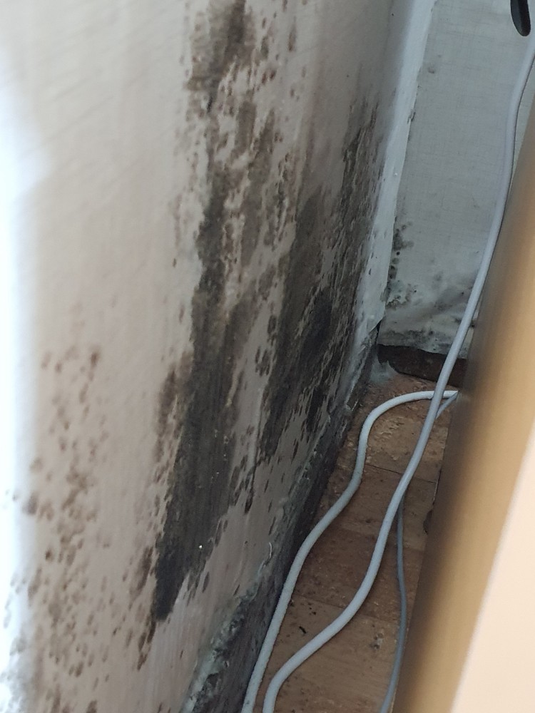 1번이 창문 하단 우측 및 모서리 사진, 2번이 창문 하단, 3번과 4번이 우측 벽 사진입니다. 그리고, 사진에 보이는건 책상입니다. 오늘 찍은 창문이 보이도록 찍은 사진을 첨부합니다. 곰팡이 제거를 위해 곰팡이 제거제를 뿌려두었습니다. 1번사진과 같은 위치이며 자세히 보시면 모서리에 시멘트 가루 흘러내려온게 보입니다. 아마 벽지 내부에 있던 시멘트 가루일거 같습니다.