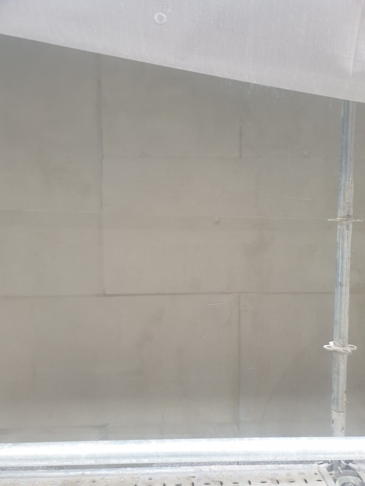 메쉬를 덮고 그위에 몰탈로 마감했습니다.