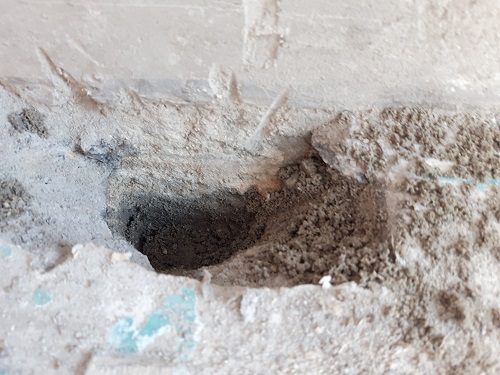 (1) 슬라브 바로 위 기포콘크리트층을 손으로 만지면 시멘트가 모두 촉촉하게 젖어있고,