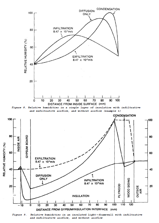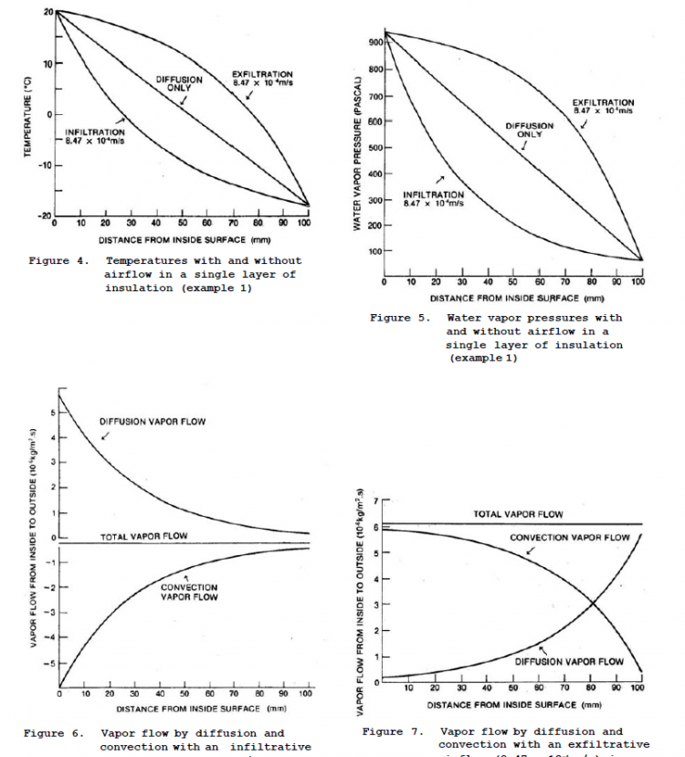 온도와 상대습도 기준, heat transport와 water vapor diffusion/convection equation 기반으로 해석을 해둔 ASHRAE의 1985년 논문이 검색에 걸려 그림만 훑어보는데, 재밌네요.
