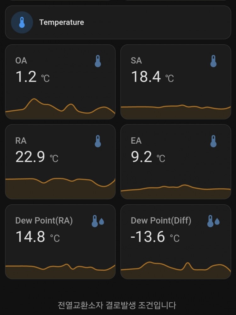 4. 엔탈피의 단위는 kJ/kg 이 맞고 제가 실수로 적은 것이고, 공기의 밀도를 고려하여 계산한 값이고, 지금은 밀도를 곱하고, 3600으로 나누어 엔탈피를 kWh로 변환하여 모니터링중입니다.