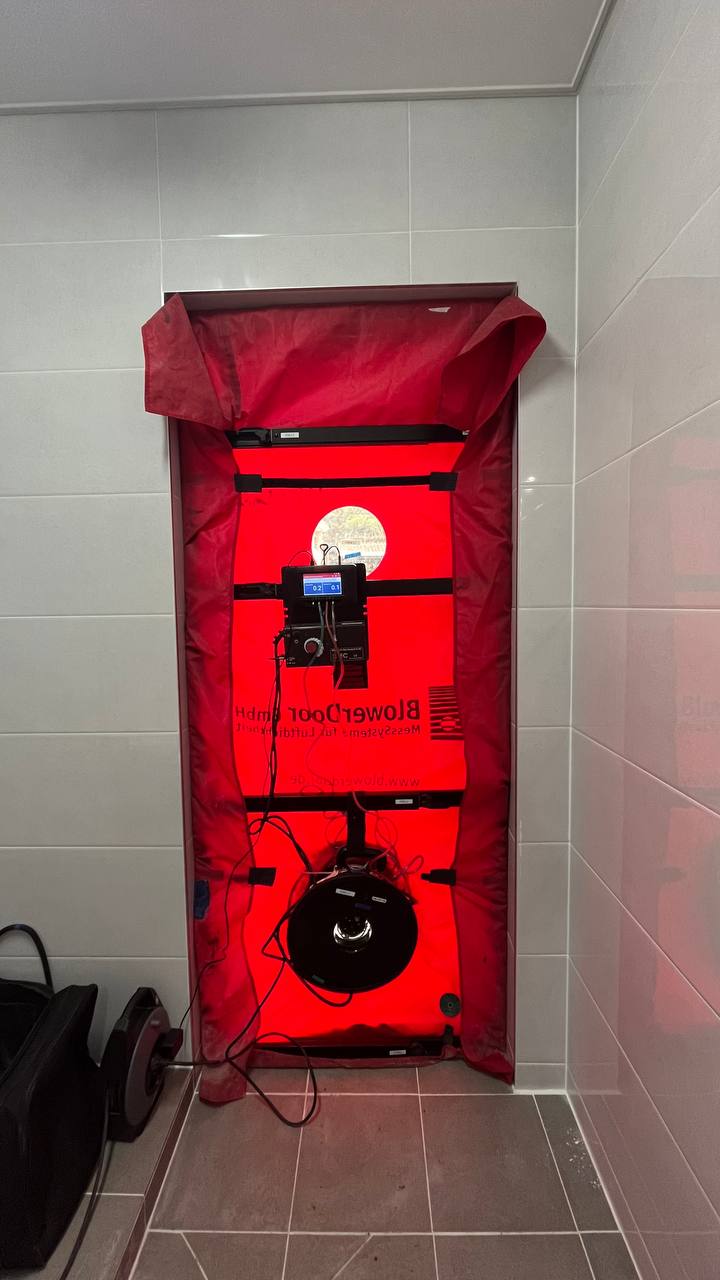 테스트 결과 가감압 0.51 /h (@50Pa)DIN V 18599-2 기준에 따라 최고등급을 달성함.