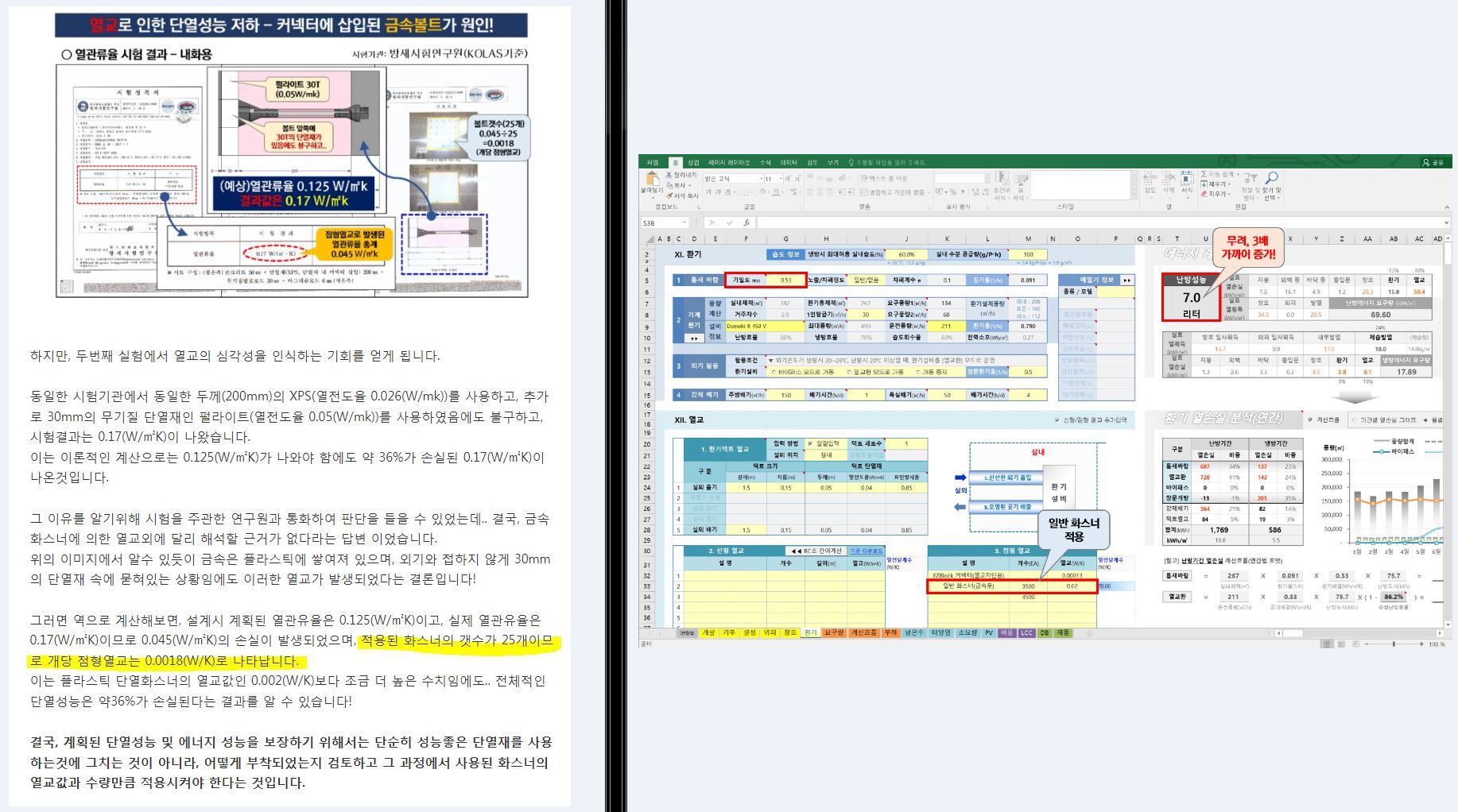 단순히 금속 화스너로 인한 점형열교로 주택 전체의 에너지성능 하락이 2.4L의 3배인 7L나 될 줄은 단열과 열교 전문가인 허대표님도 의구심을 가질만한 사실인데..