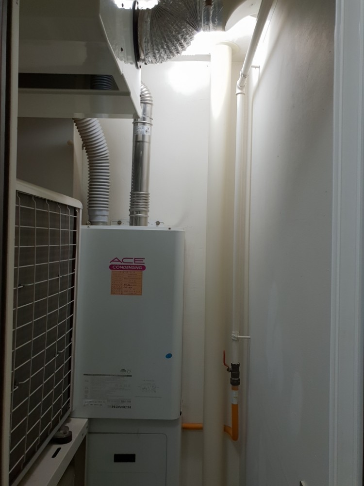 그리고 설치공간은 사진에 보이는 실외기 앞이 아니고 안쪽에 미닫이문으로 나뉜 공간이 별도로 있는데(사진을 찍은 곳)