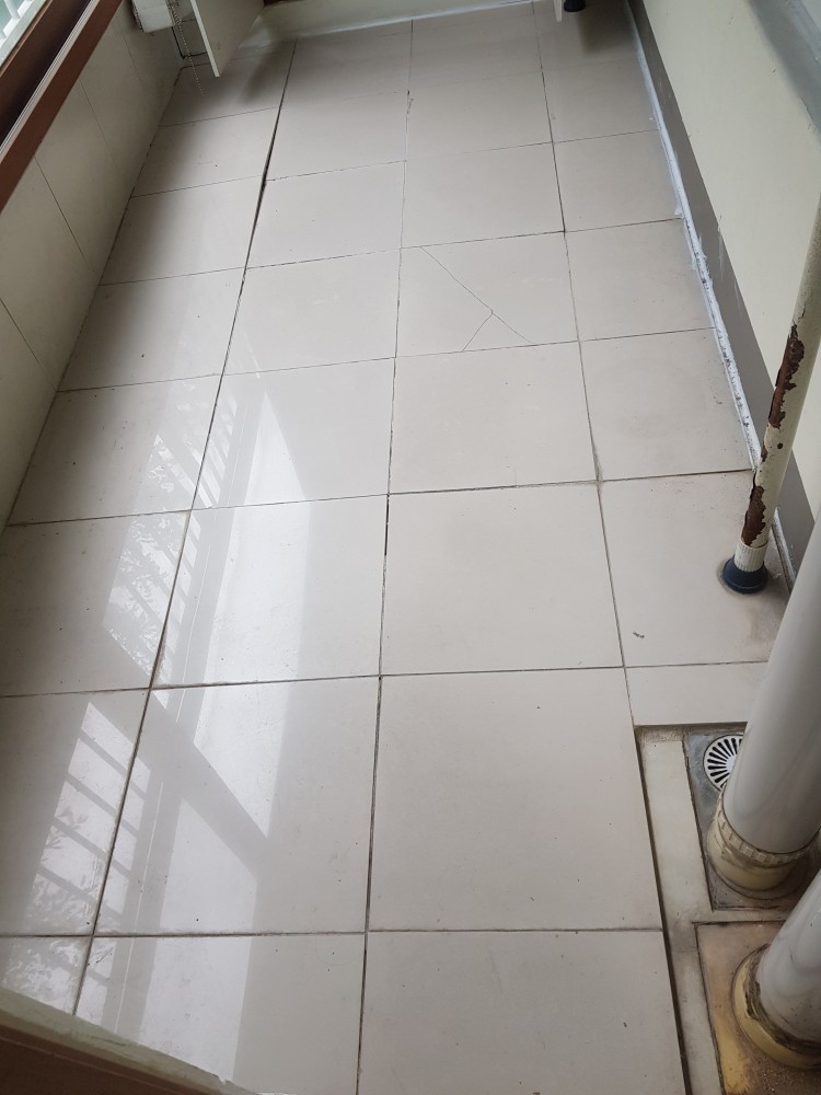 베란다 바닥에 타일이 박리되어 떠있는 모습입니다.