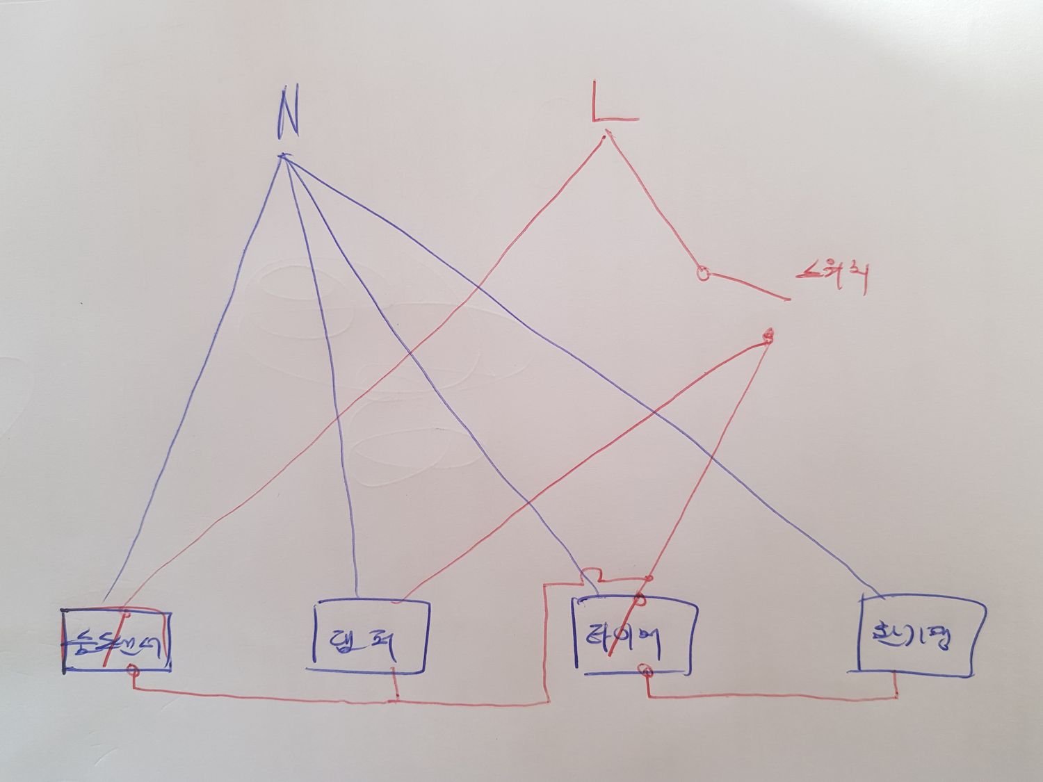 보통 조명과 환풍기를 같이 묶어서 작동시키거나 혹은 환풍기 별도의 스위치를 만들어줍니다.