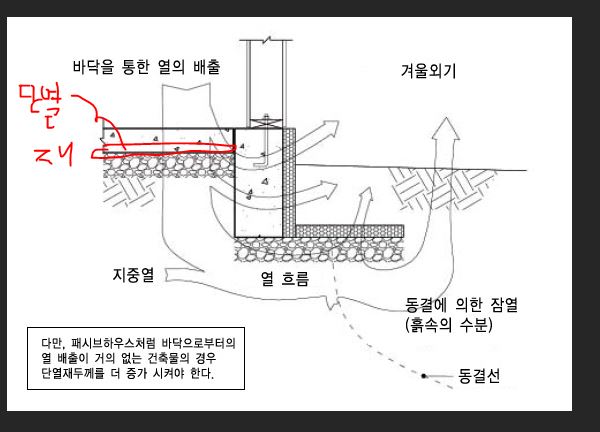 다만, 패시브하우스처럼 바닥으로부터 배출되는 열이 거의 없는 건축물의 경우에는 측면과 수평단열재를 더 증가시키면 되는 것이다.