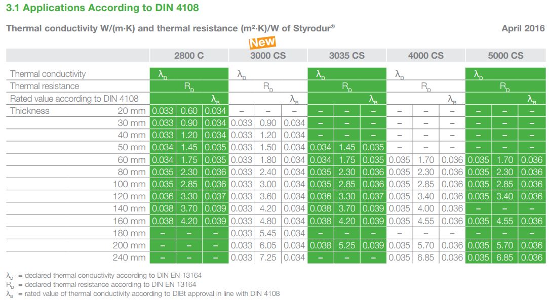 독일 BASF에서 생산하는 여러 제품의 열전도율 입니다. 자세히 표를 보시면 두 종류의 값이 있습니다. 한국 BASF는 어떤 값을 사용하는지 갑자기 궁금해 지는군요!!