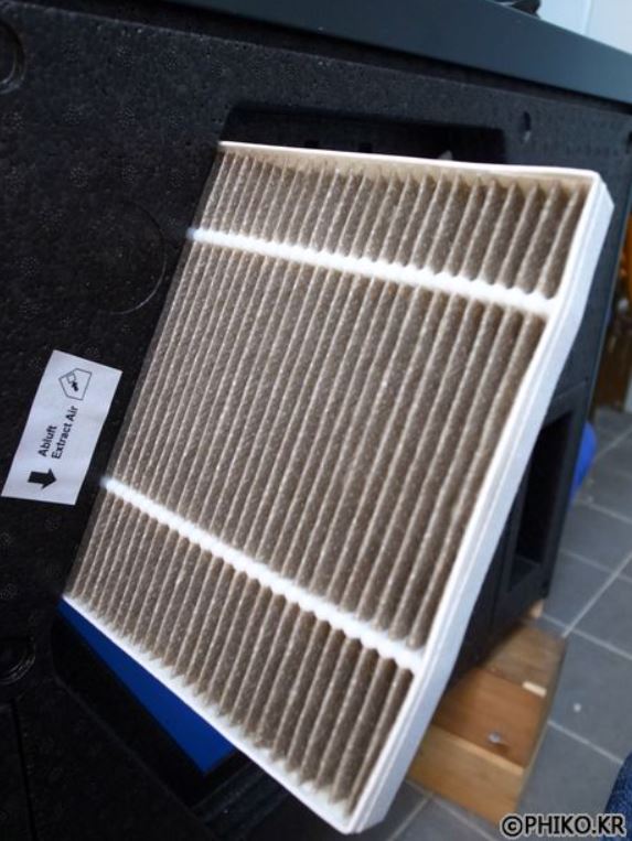 근데 저 사진은 좀 놀랍습니다. 저도 현재 전열교환기를 5달 정도 쓰고 있는데 며칠 전 RA 측 필터 점검 시 엄청 깨끗했던지라... 처음부터 구내로 필터링이 제대로 안 되어서 들어간 건 아닐까 싶어요. 아니면 몇 년 째 교체를 안 했나...