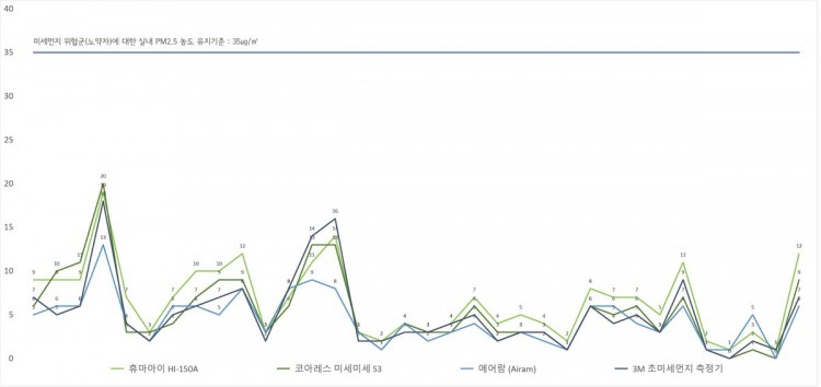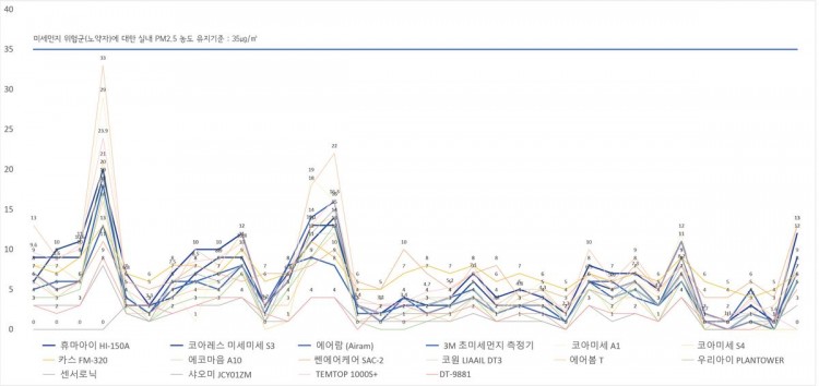 비교적 비슷한 추이를 나타내며, 나머지 비인증 측정 장비들 중 동일 시점에서