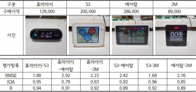 3. 1등급 이외 미세먼지 간이측정기 비교