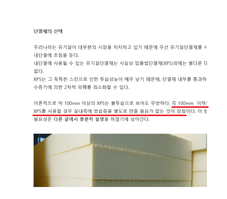: 사용은 하되, 결국 유기계단열재 임을 잊지 않아야 한다.