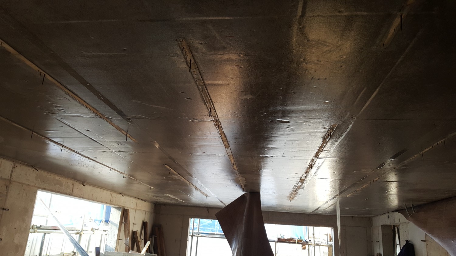 지붕구성지붕기계미장 죠인크 액체방수 t=100mm압출법단열재특호+t=100mm 비드법단열재(40kg)2장위 복합방수/t=100mm 무근콘크리트위 기계미장