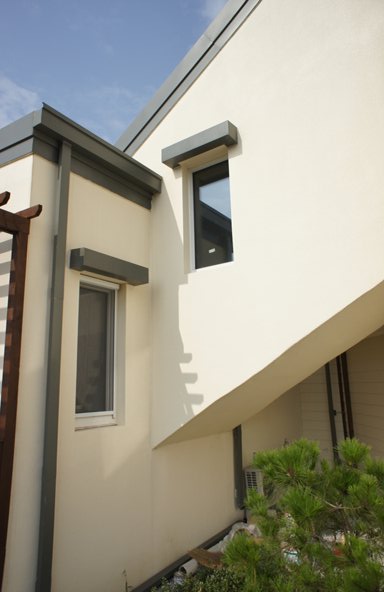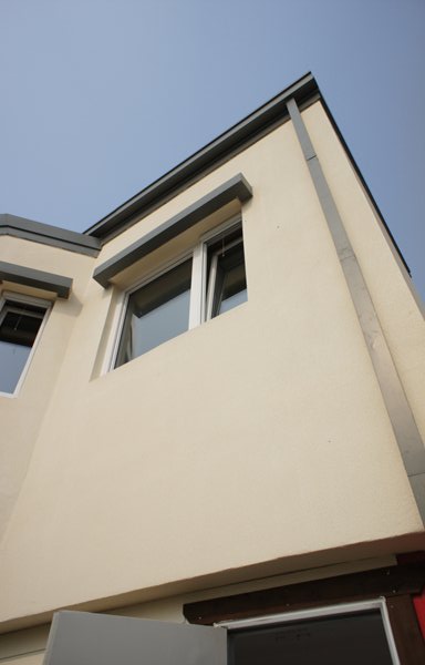 덧댄 모습을 좀 더 자세히 촬영하였다. 프레임 외곽을 감싸는 방법은 여러가지 이유로 이제껏 반영되지 못하다가 양주주택에서 처음으로 실현이 되었다. 추후에 열화상을 찍어보면 그 효과를 극명히 볼 수 있을 것이다.