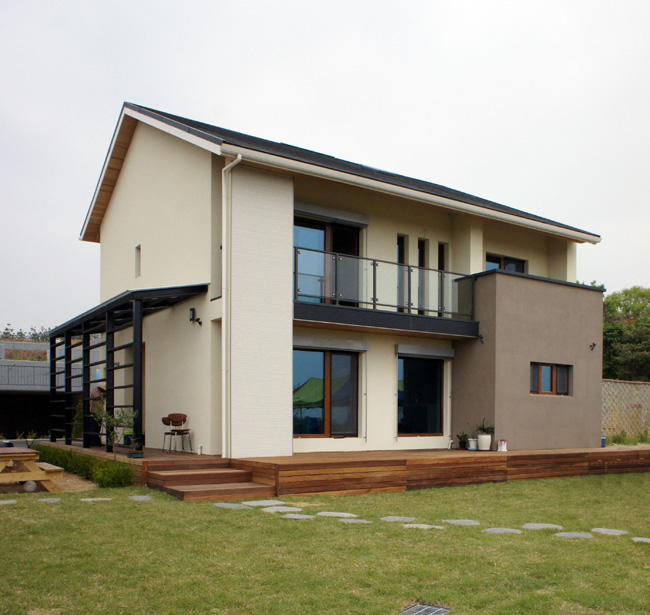 외관은 지금까지의 우리나라 고효율주택과는 사뭇 다른 향상이며, 색의 조화가 좋다.