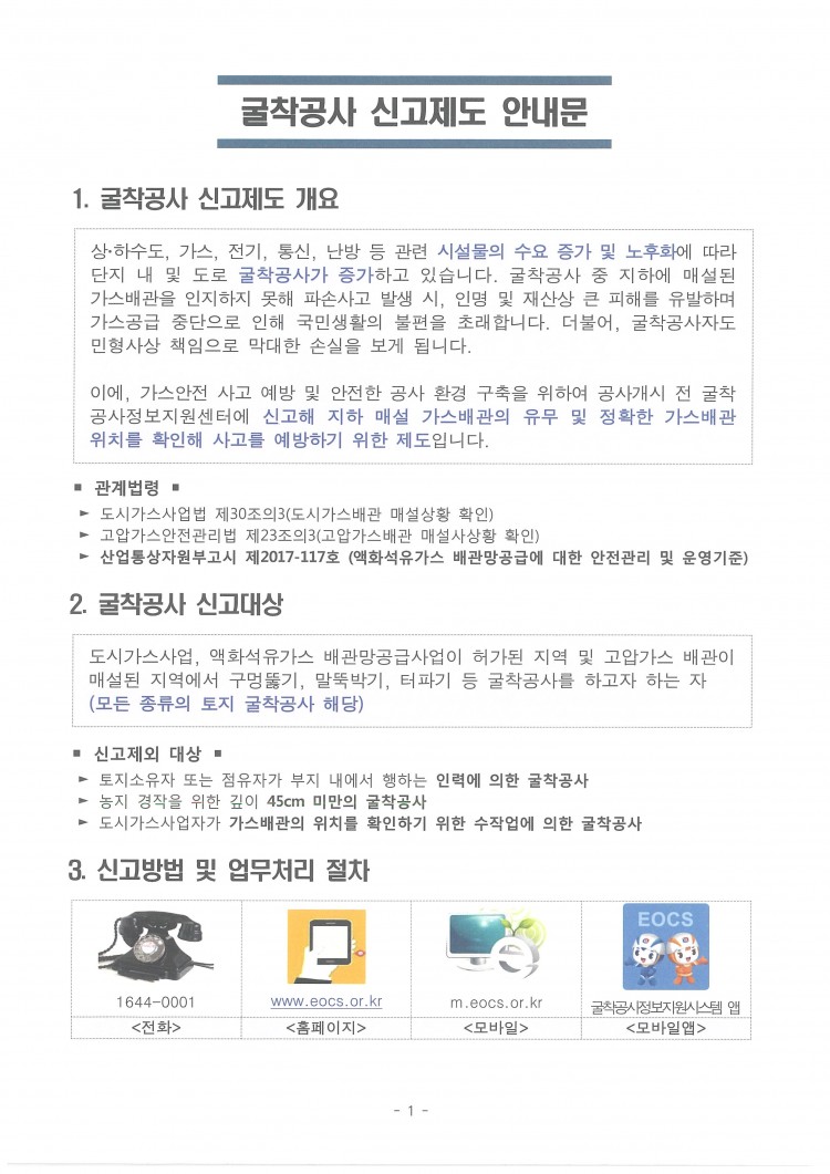 굴착공사 신고제도(한국가스안전공사) 내용 안내