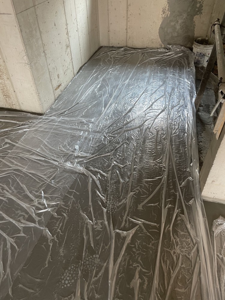 -방통 공법: PE비닐과 방통메쉬, 유핀, 코너철물 등 적용