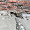 바닥재 사이에서 흙본드물이 올라옵니다.