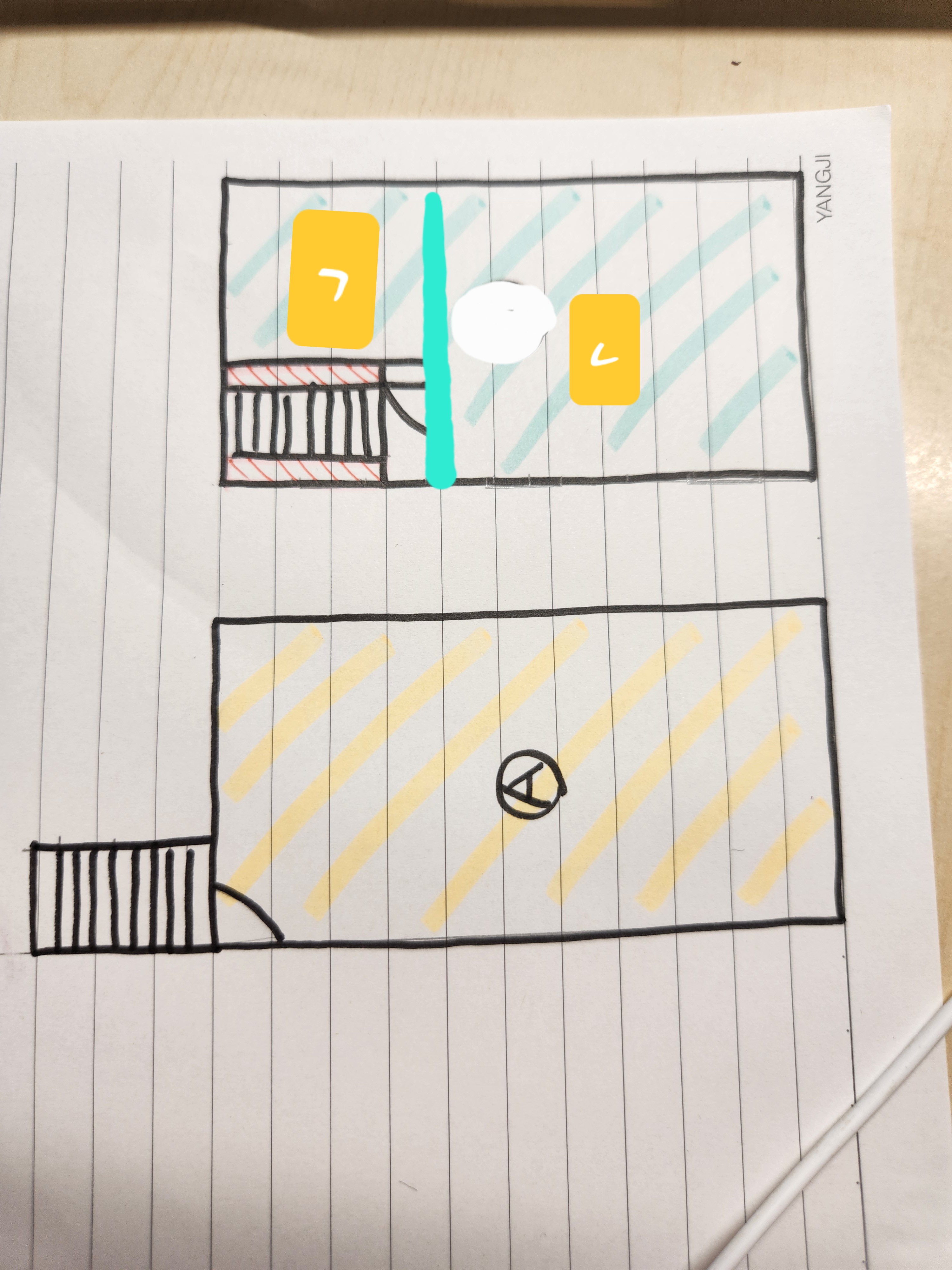 - 계단 하부에는 보일러실, 화장실, 창고 가 설치되어 있음.