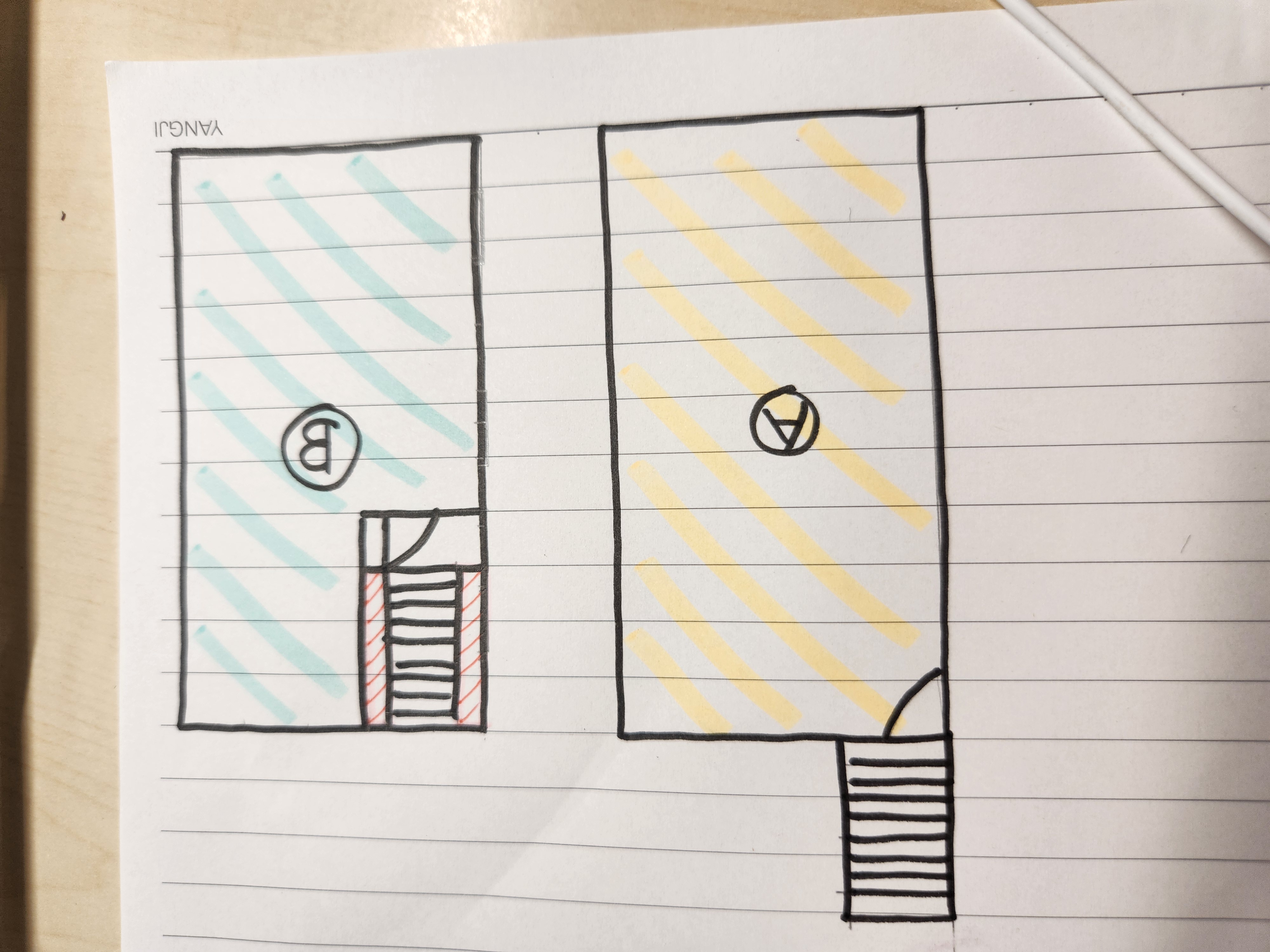 A,B 둘다 같은 크기일때, 실제사용하는 바닥면적은 다르지만 다락면척 가중평균 높이계산할때는 같은 바닥면적으로 나눠주는건가요?
