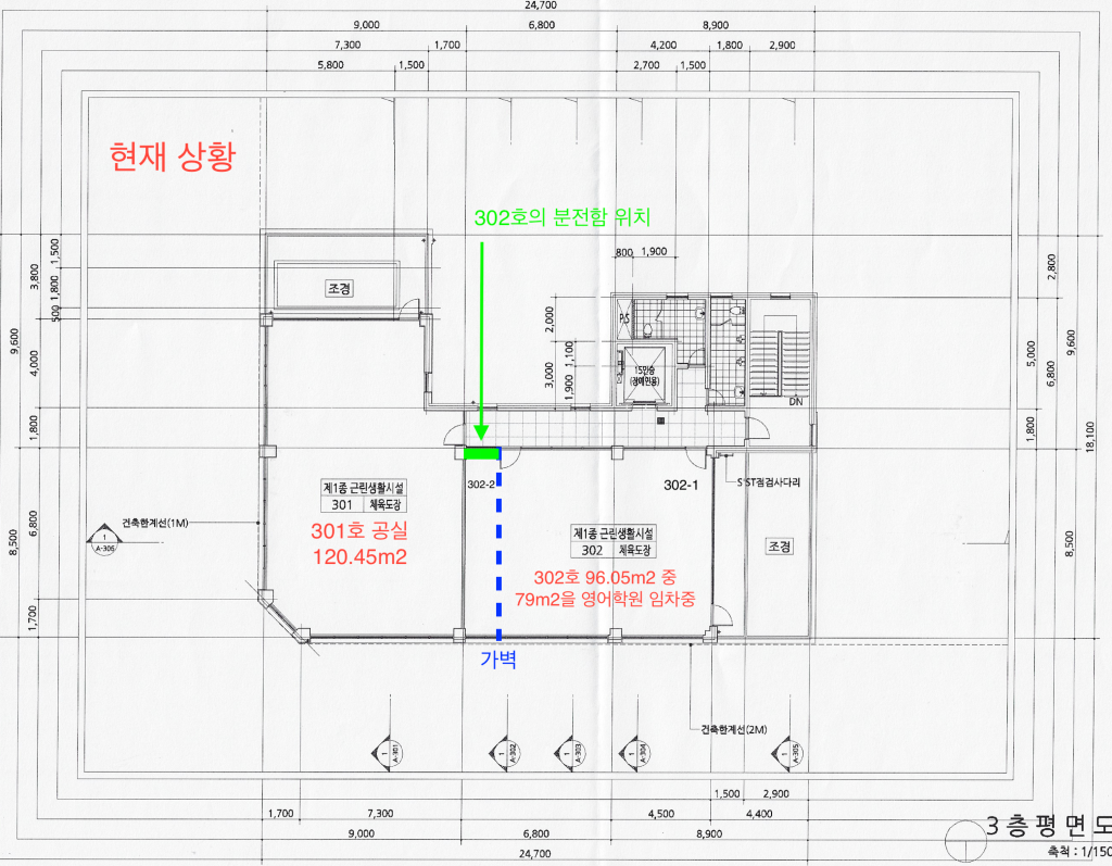 (과거 매수당시 가벽이 그렇게 있어 깊게 생각지 않고 302호에 영어학원을 그대로 임차한게 화근인것 같네요)