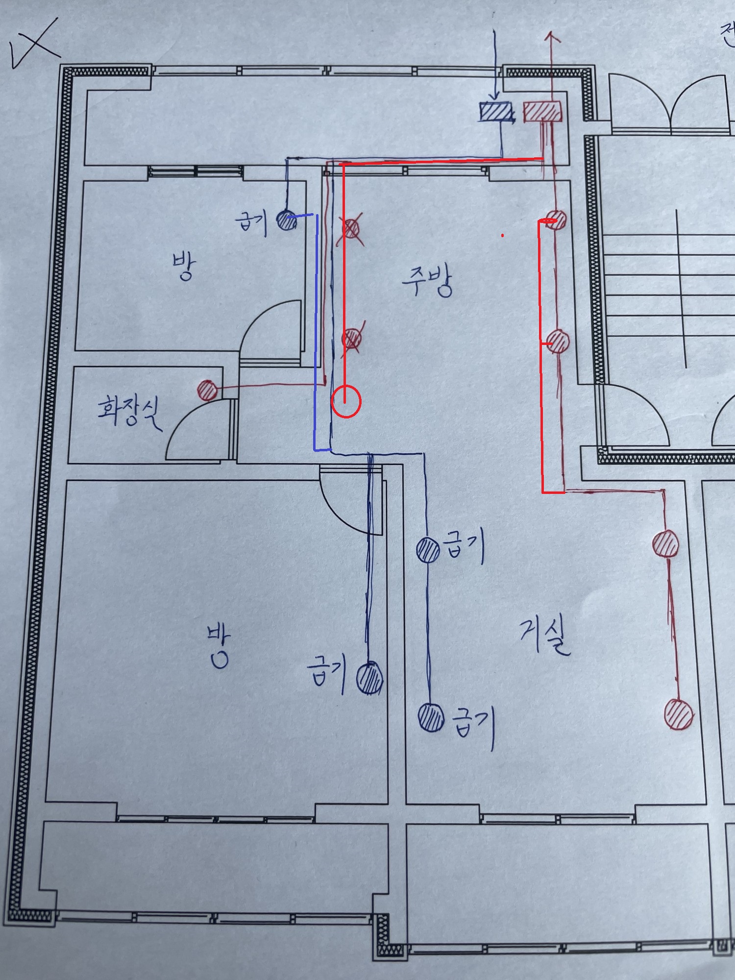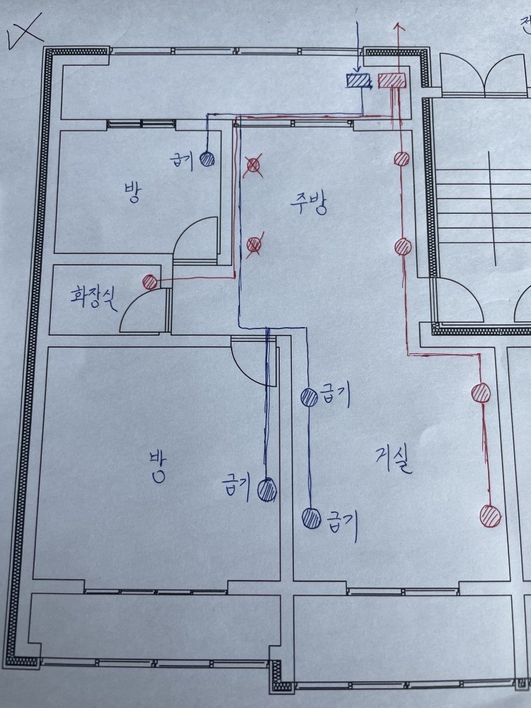 안녕하세요. 이번에 전열교환기를 설치하려고 하는데 대략적인 도면을 스케치해보았습니다. 괜찮을까요?