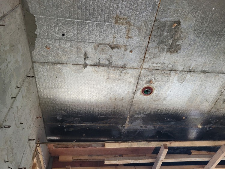 1층 상부 슬래브와 타설에 따라 필로티 상부와 발코니 바닥에 PF보드 THK110 단열재를 일체로 타설하였는데 단열기능과  하자 등의 문제는 없는지 여쭤봅니다. 현재 상태는 첨부된 사진을 참고해주시기 바랍니다.