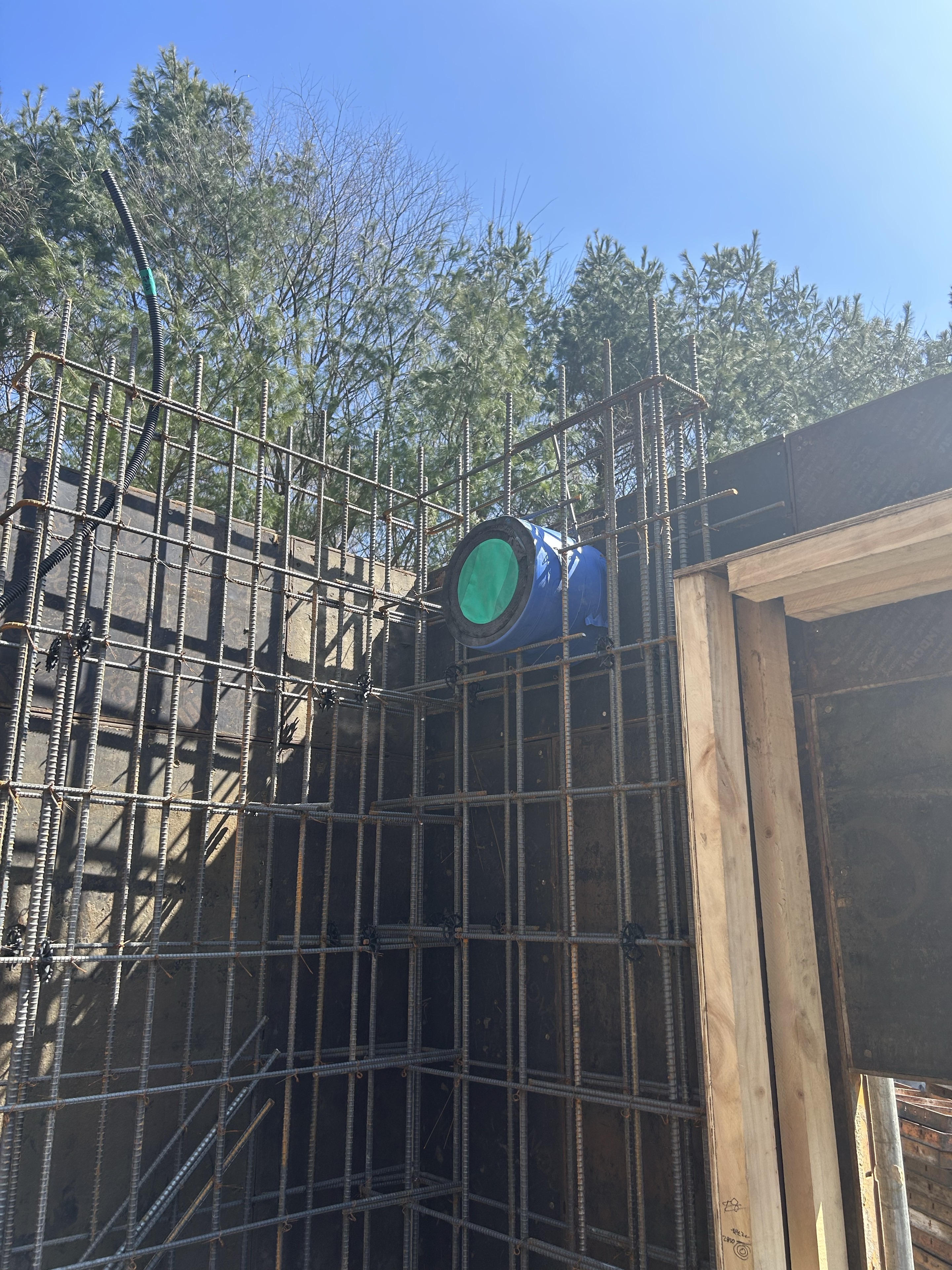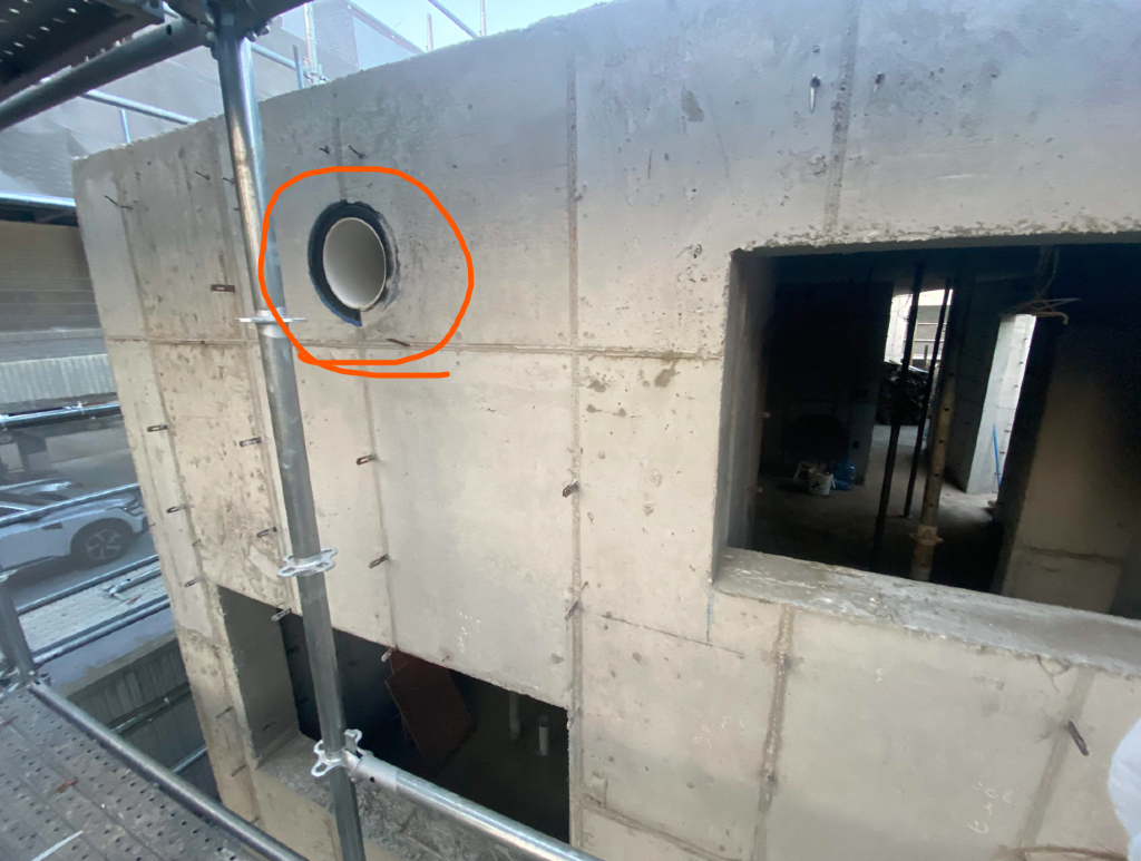 콘리트 타설 전에 배관에 고마발포단열재를 감싸서 매립해두었습니다.
