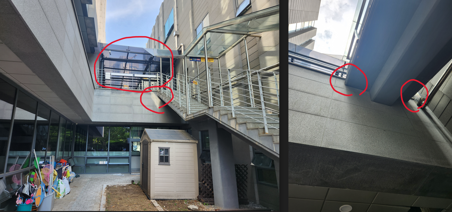 조언주신대로 외부 창틀 사이, 마감재 사이를 신경써서 실리콘작업 등 조치 하였으나, 문제는 아래 사진과 같이 (최초 건축 이후) 증축한 부분을 통해서 누수가 발생한것 같습니다.