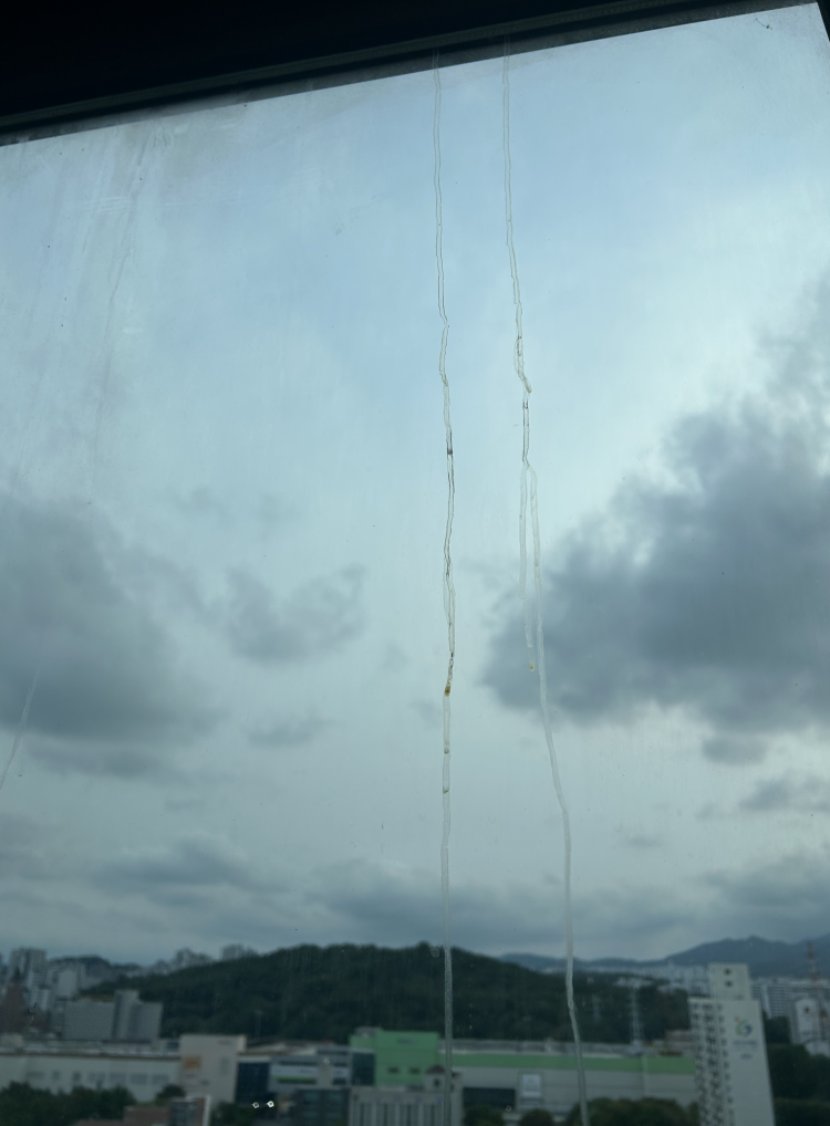 그런데, 이상하게 창문 중간 지점(내측)에 물방울 자국이 형성되어 있는 것을 발견하였는데,