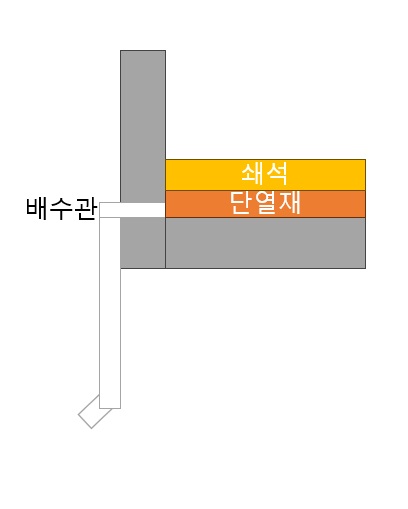 5) 테라스 배수관 위치는 첨부그림처럼 슬라브에 딱 붙여서 옆으로 뚫어서 내는게 맞나요?