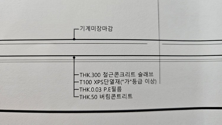 도면 : 1층 상가 T50버림+0.03PE필름+T100 XPS+T300슬라브